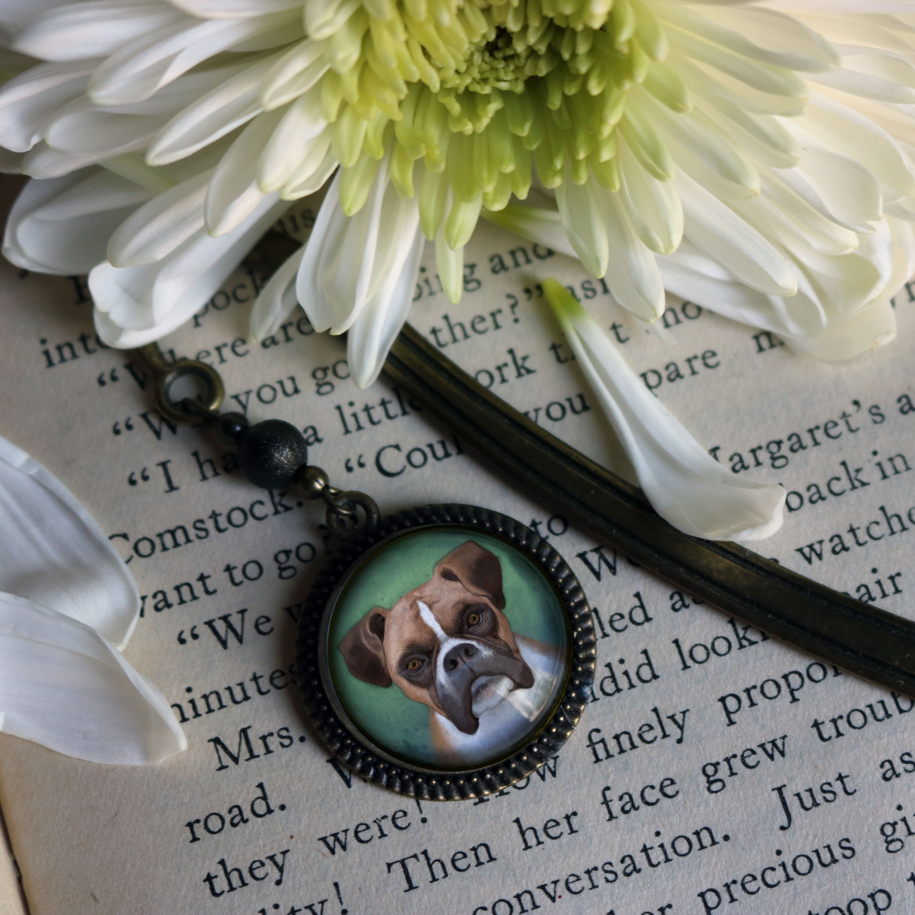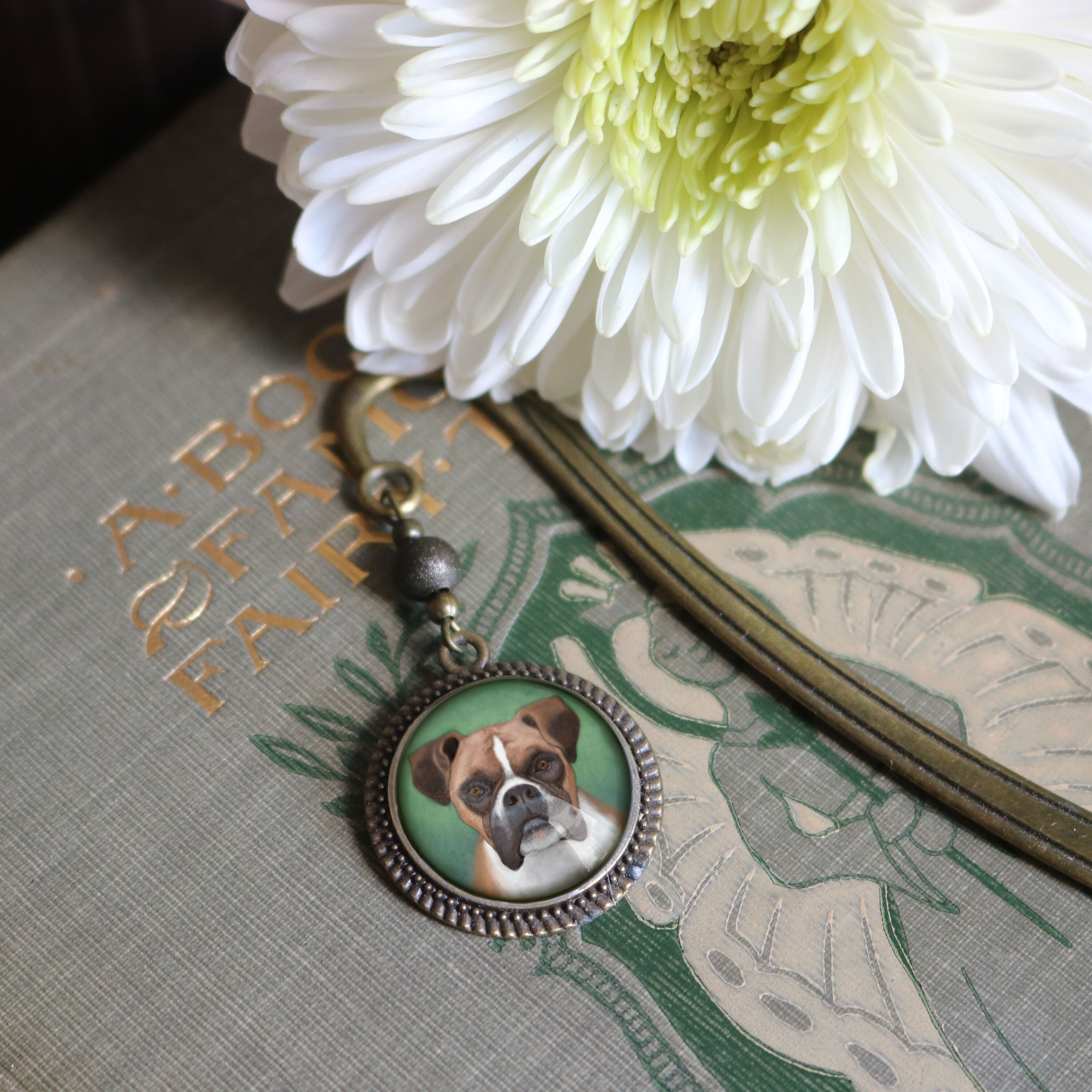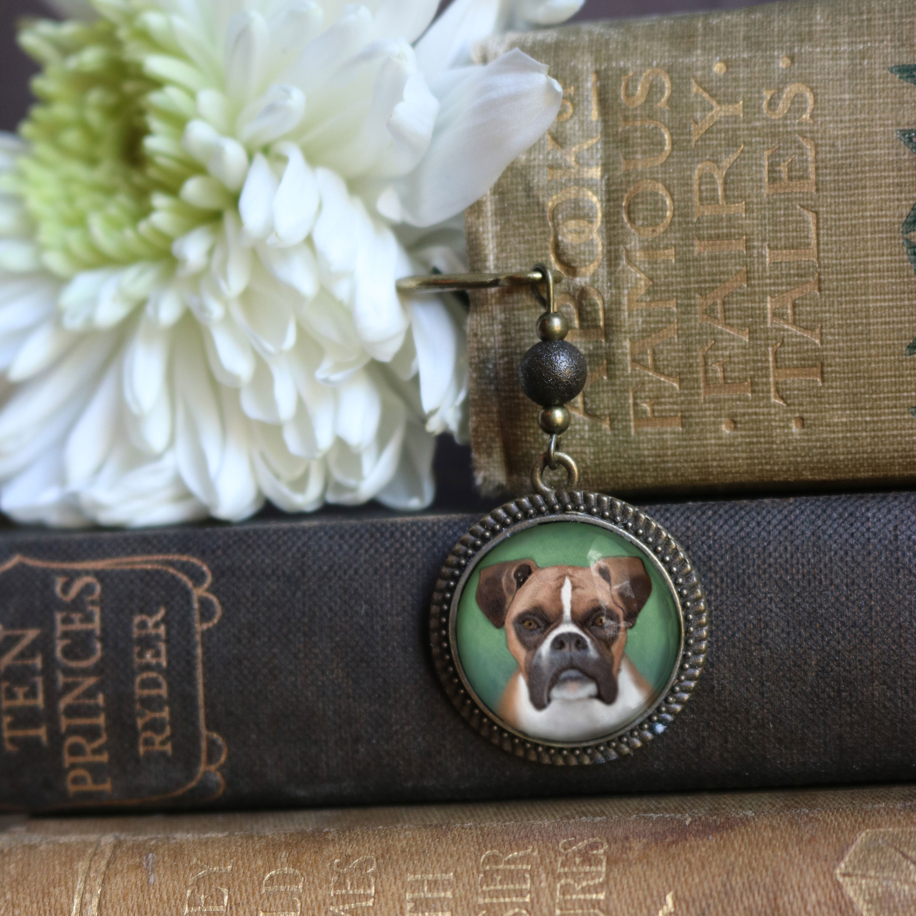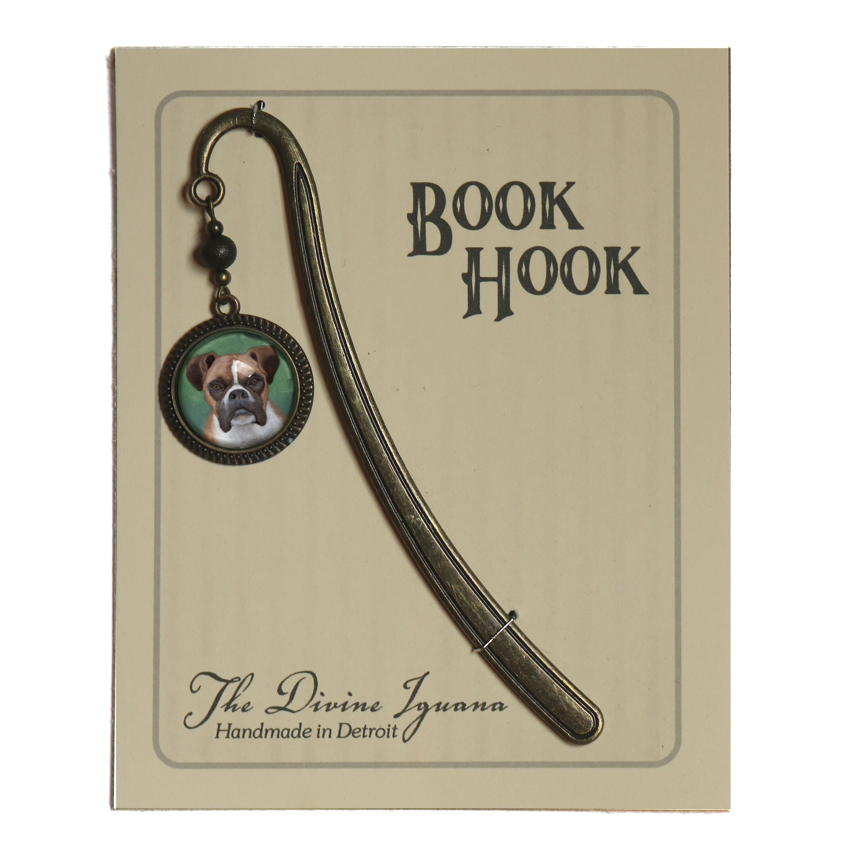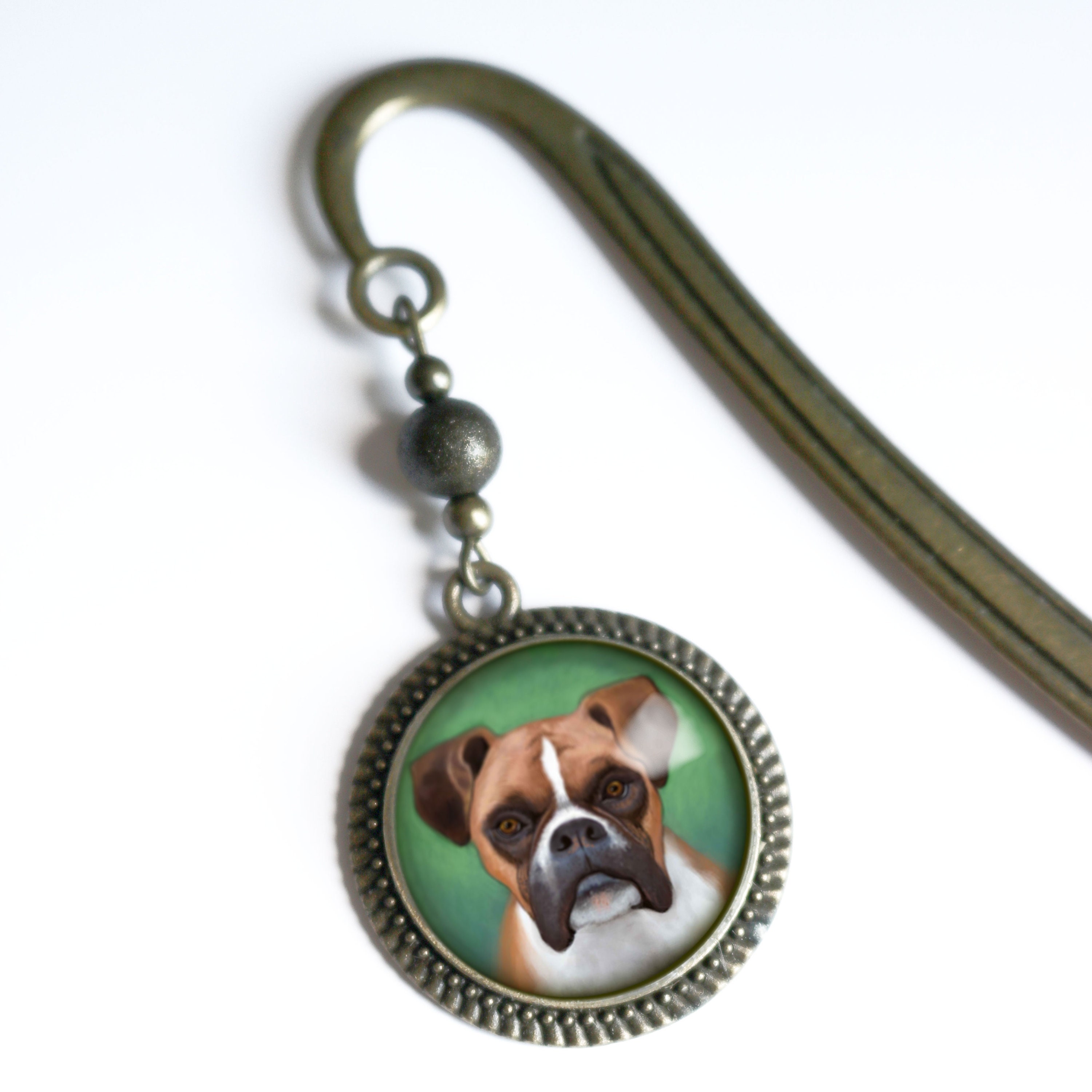 Boxer Dog Glass Cabochon Brass Book Hook / Bookmark