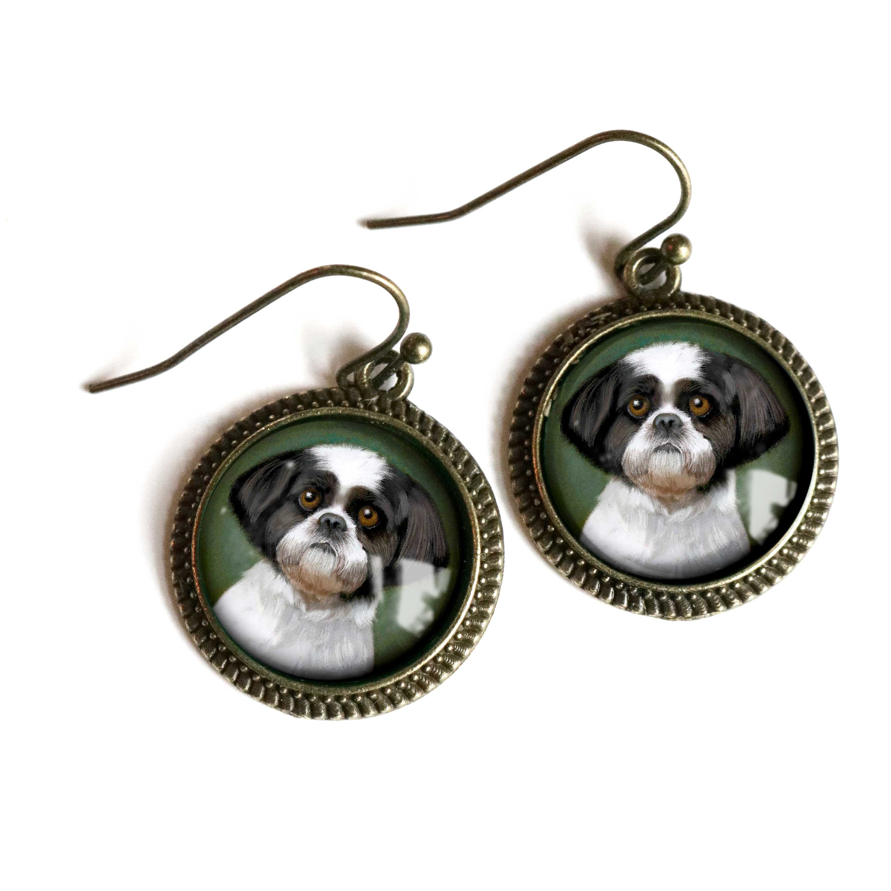 Pretty black and white shitzu earrings, perfect for pet parents!