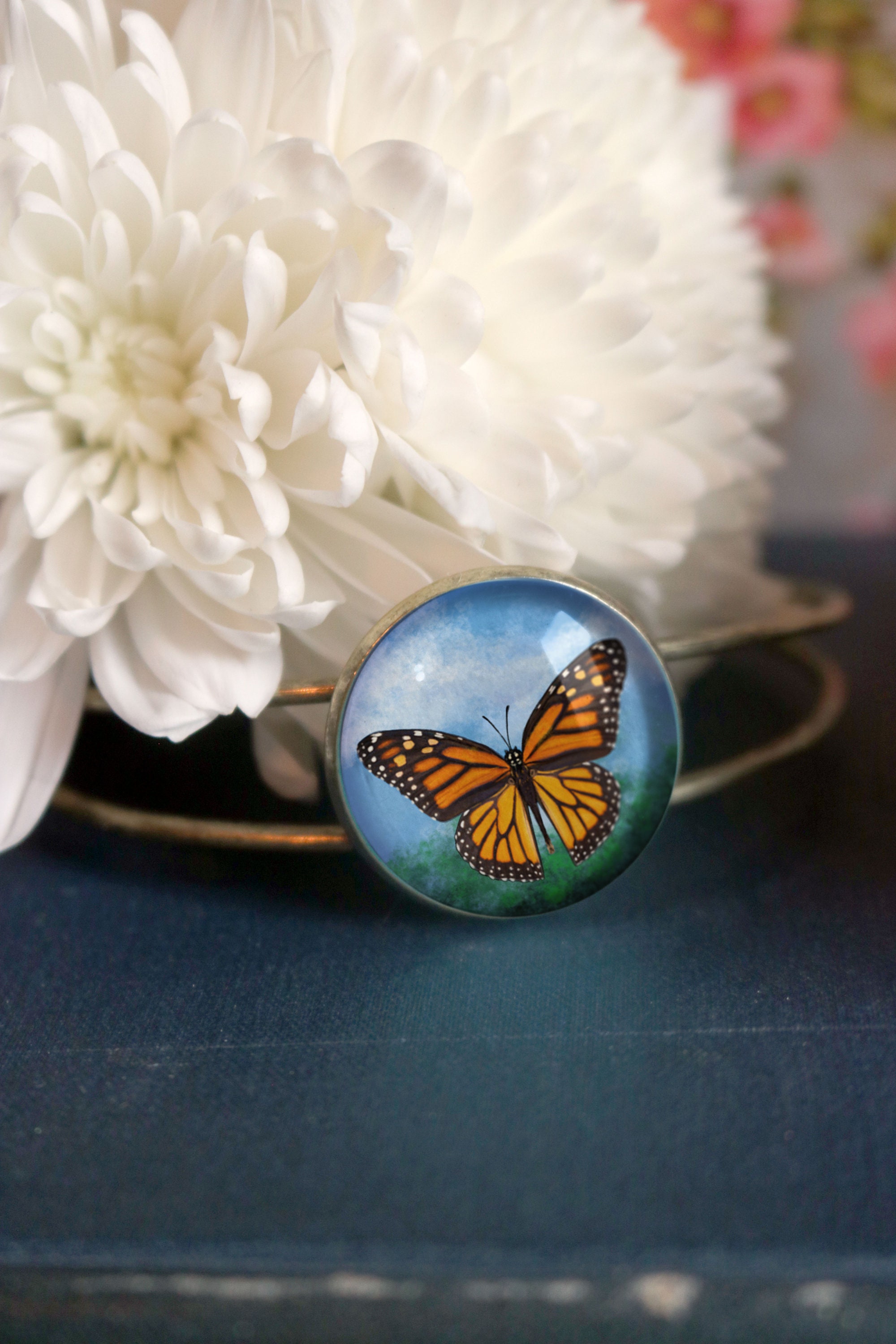 Monarch Butterfly Cuff Bracelet / Bangle in Antique Brass