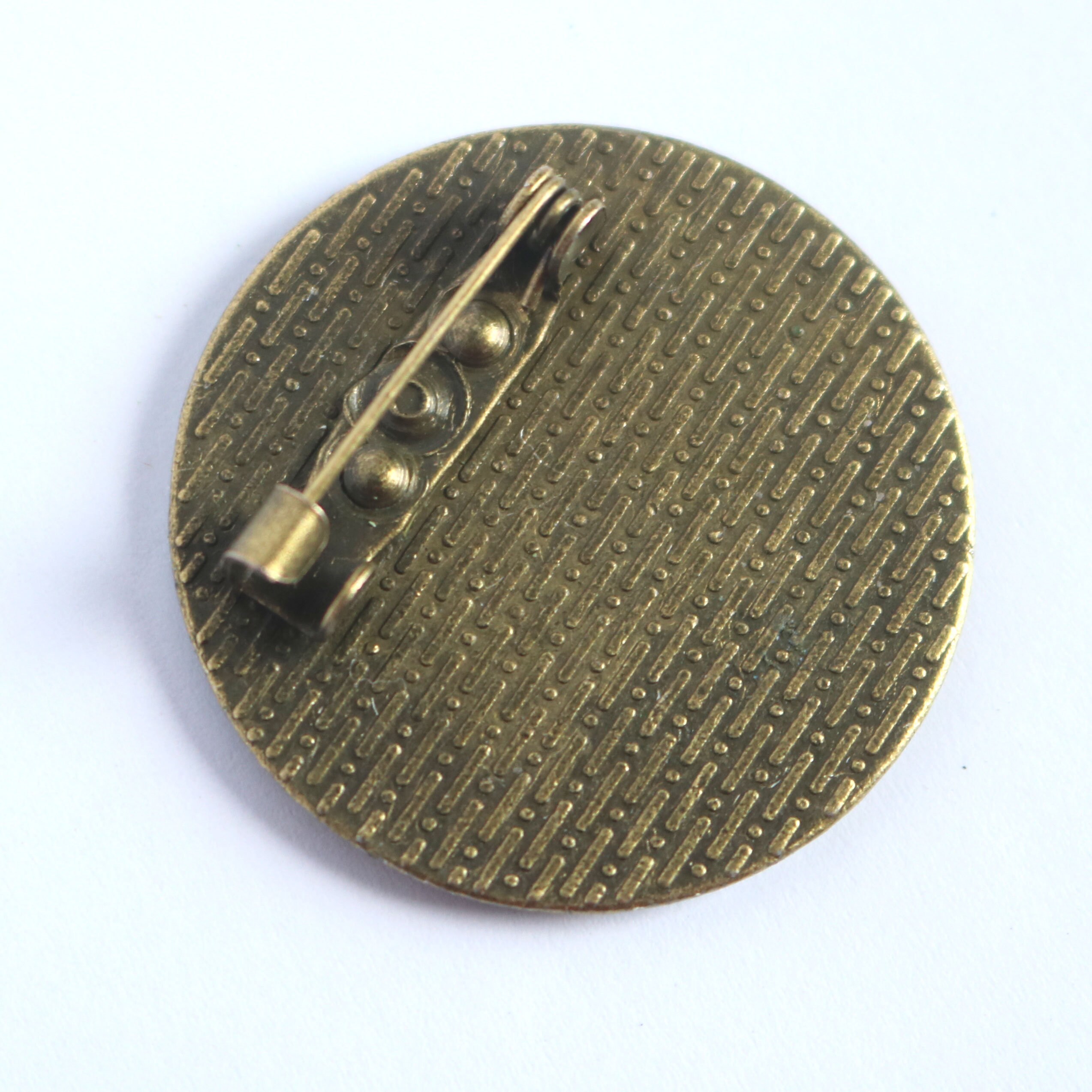 The reversed decoupage glass cabochon in your brooch was lovingly hand made in a home studio in Detroit, MI.
