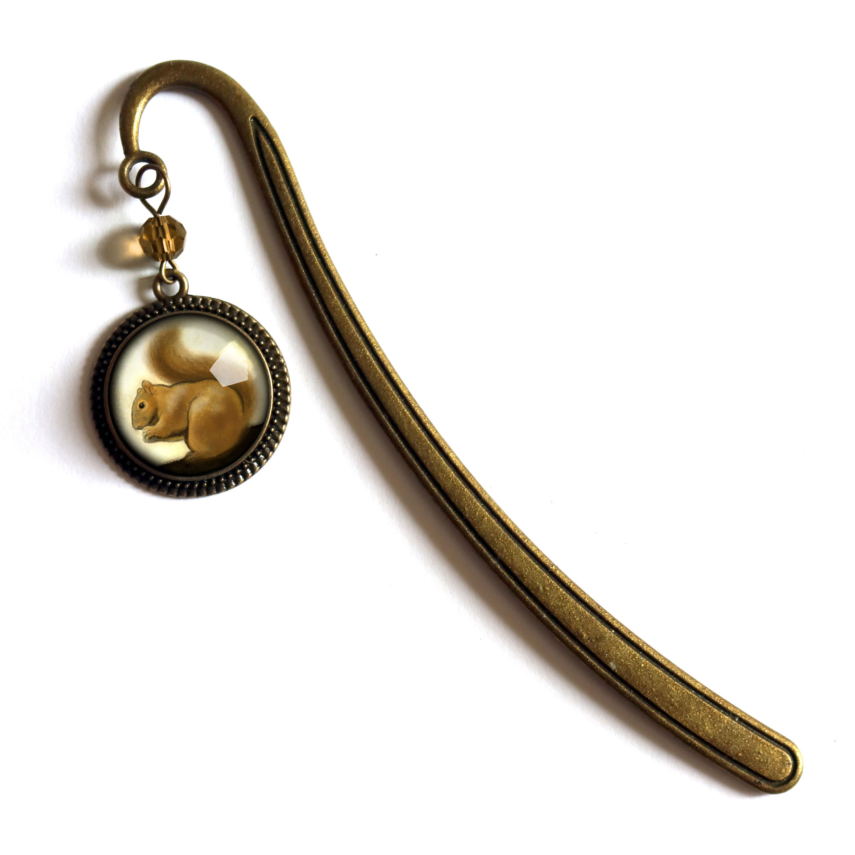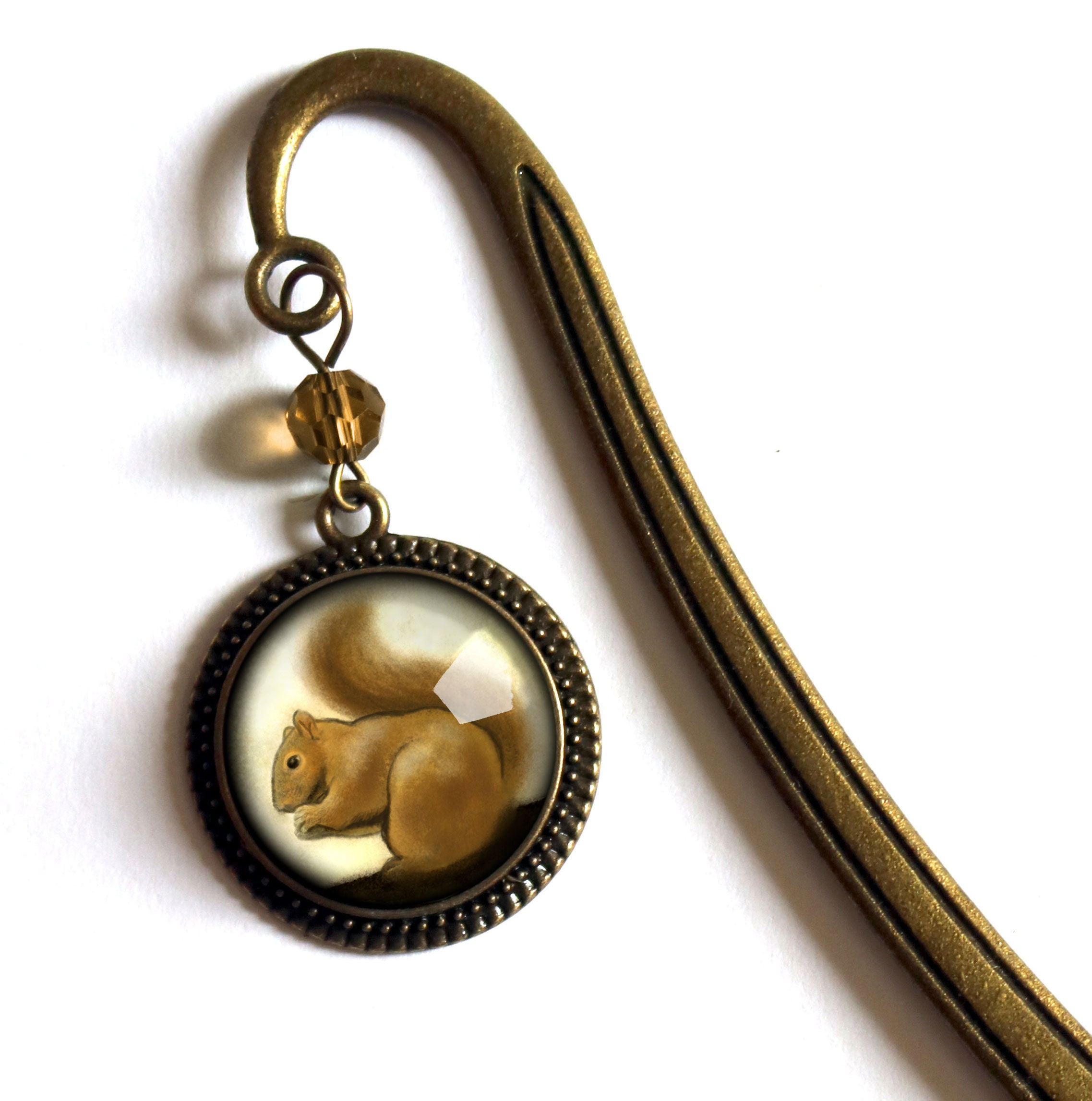 Keep your place with this elegant brass book hook style bookmark. The slender brass hook slides down between the pages while the ornate brass ornament dangles along the spine.