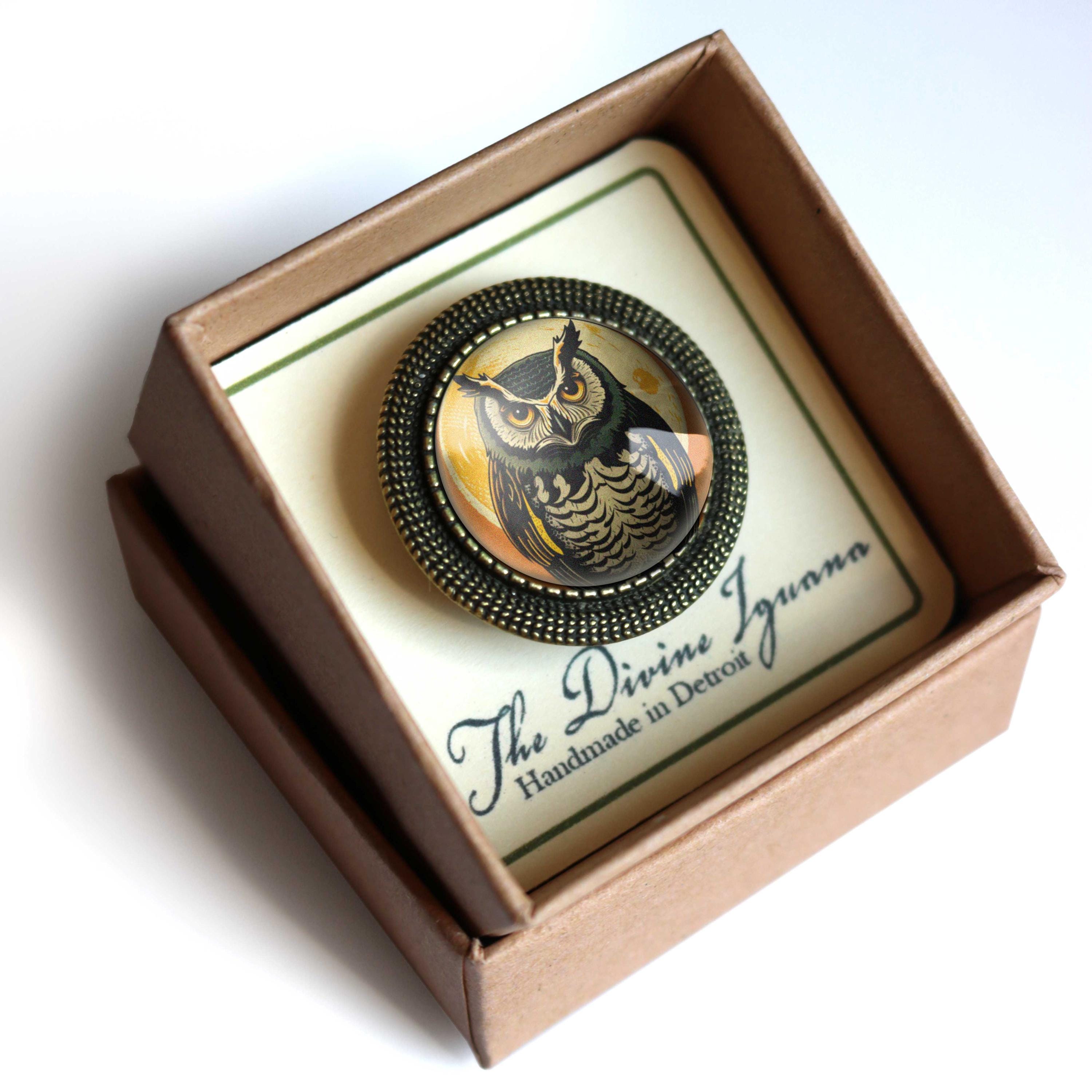 Simple, vintage inspired brooch with brass setting.
