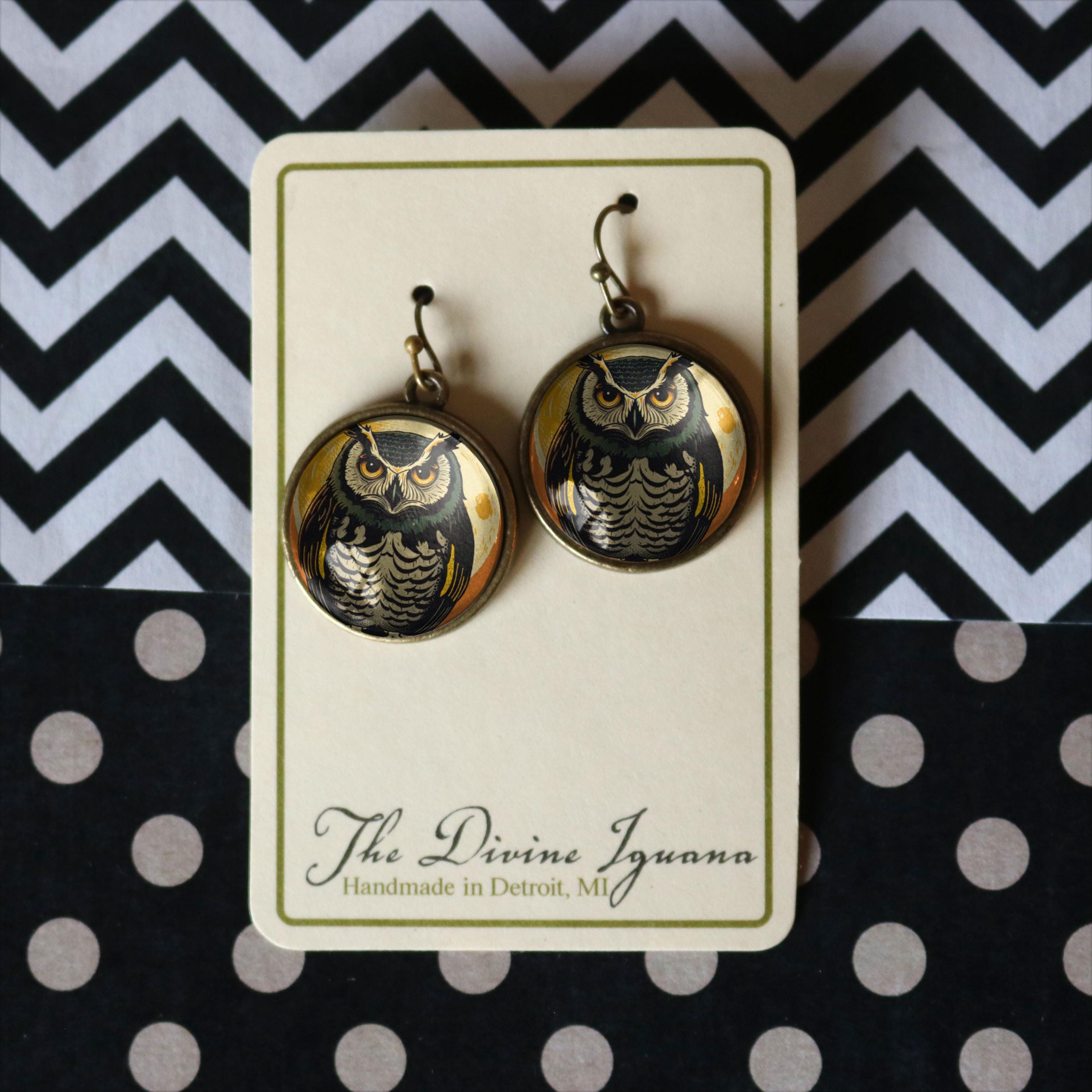Have a very happy Halloween with our bright and Retro Owl earrings. Inspired by vintage Halloween decor from the 40's - 70's, our owl earrings are a great way to add a touch of whimsy to your fall wardrobe.