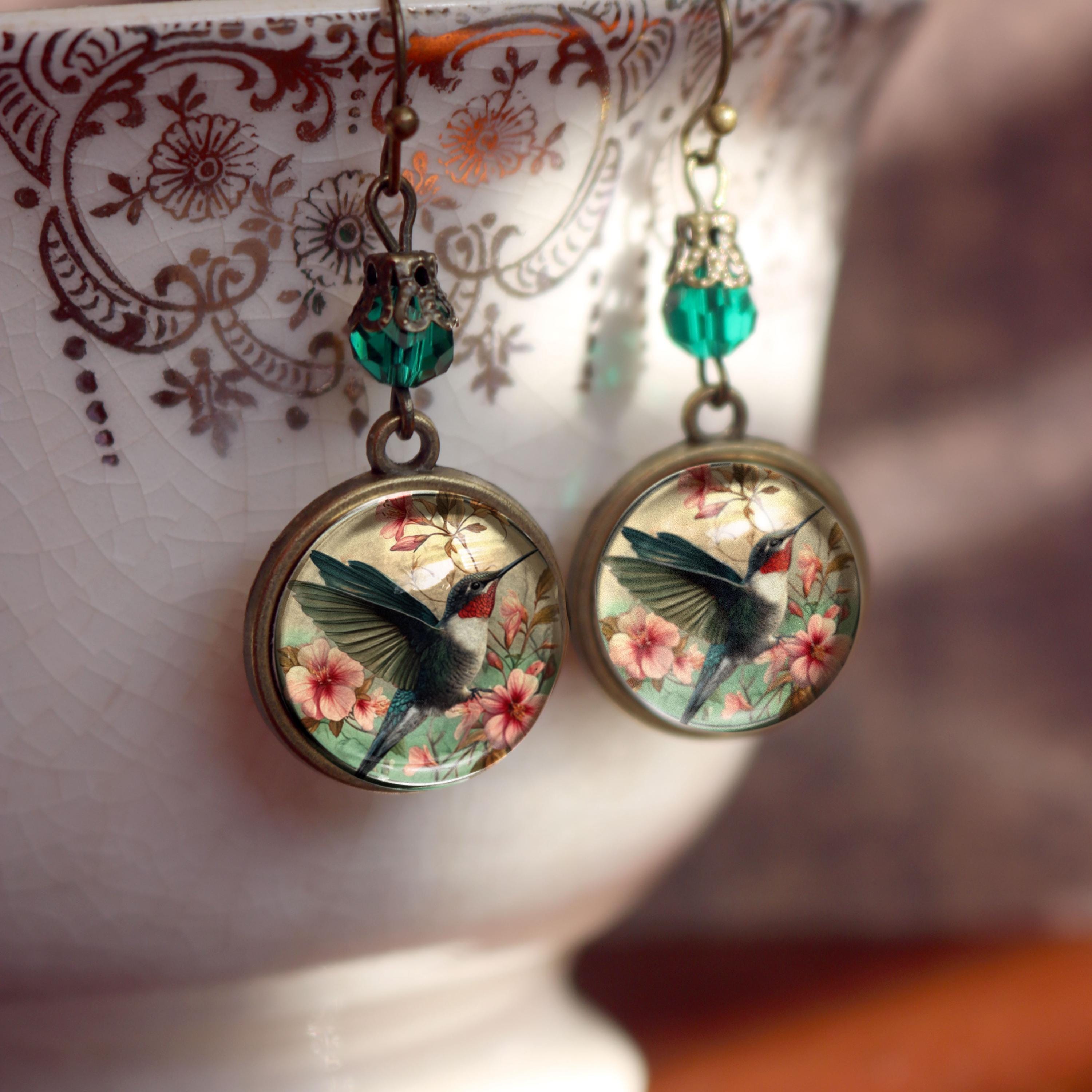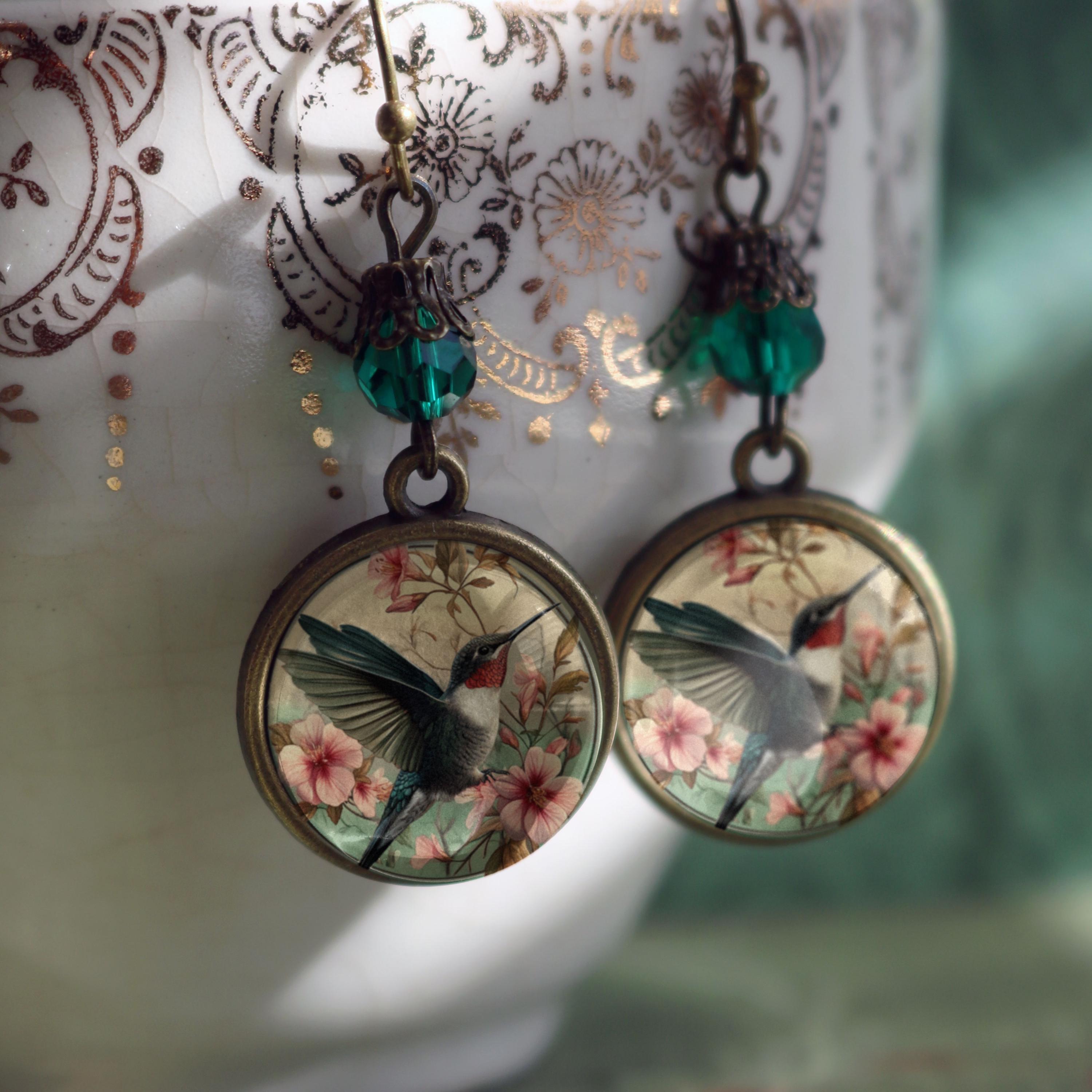 Vintage inspired glass cabochon earrings with dangling accent beads.