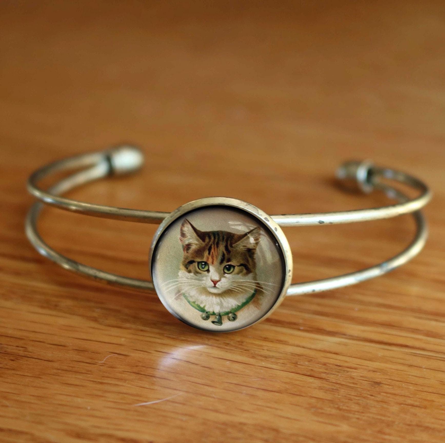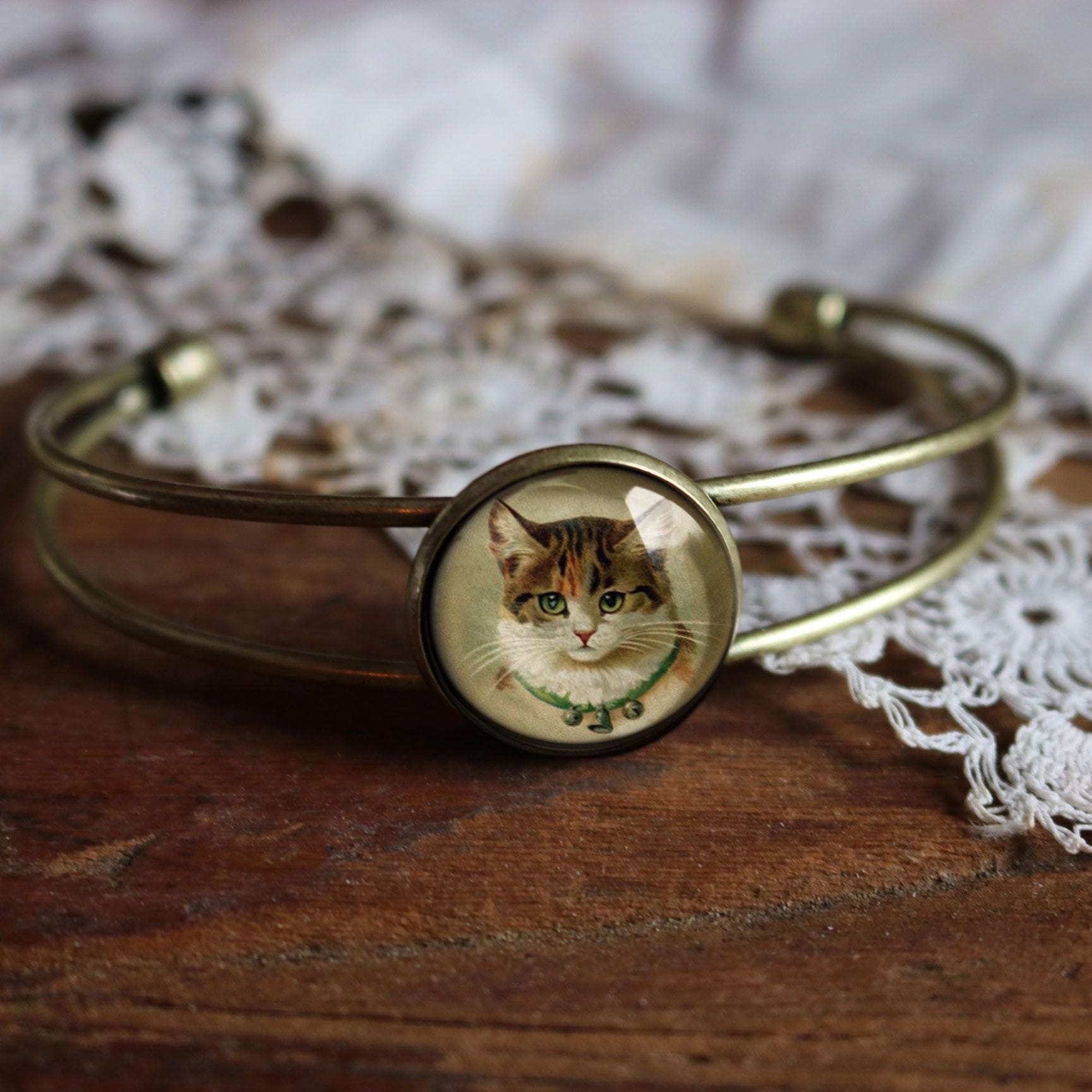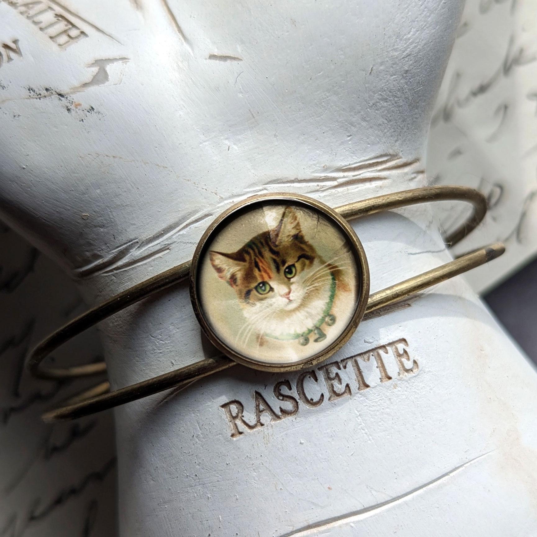Image is reverse decoupaged under glass cabochon.