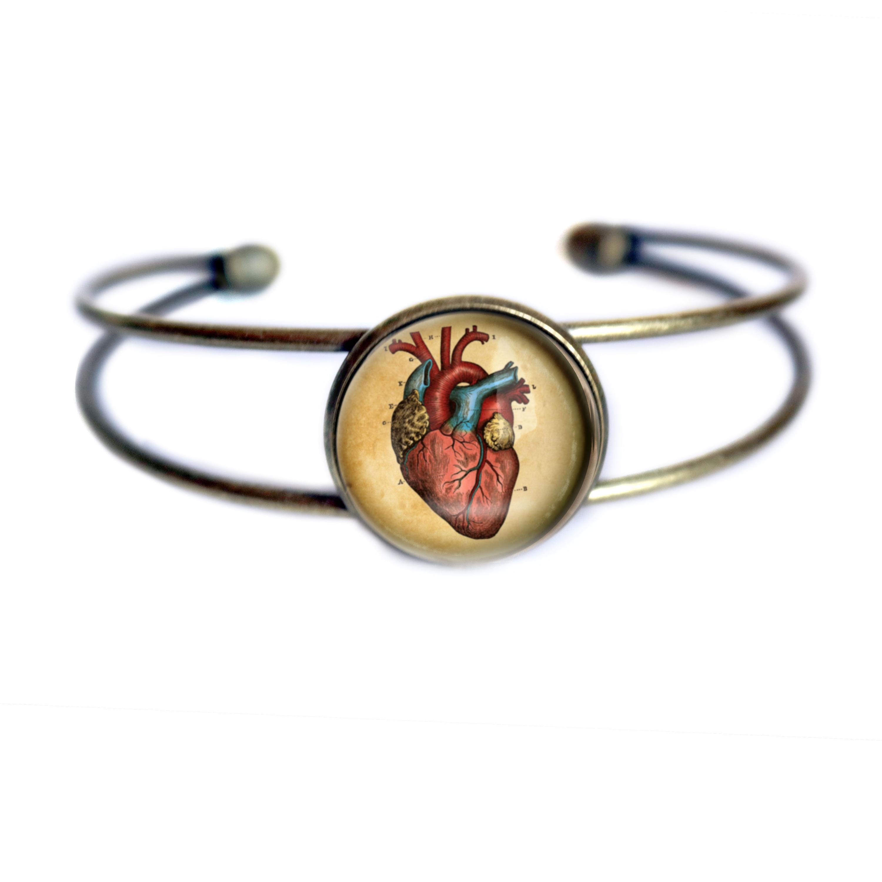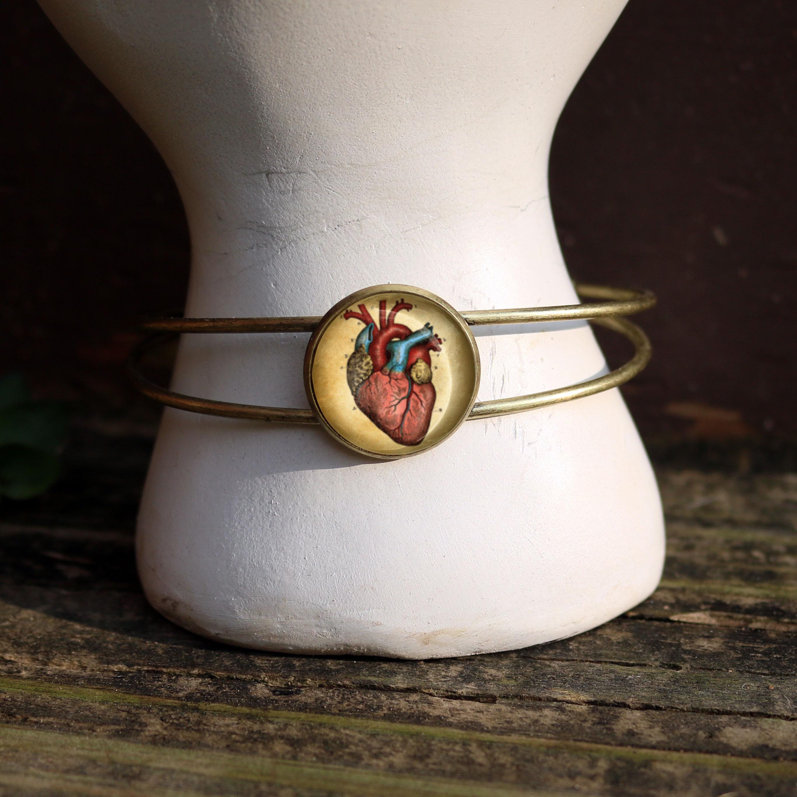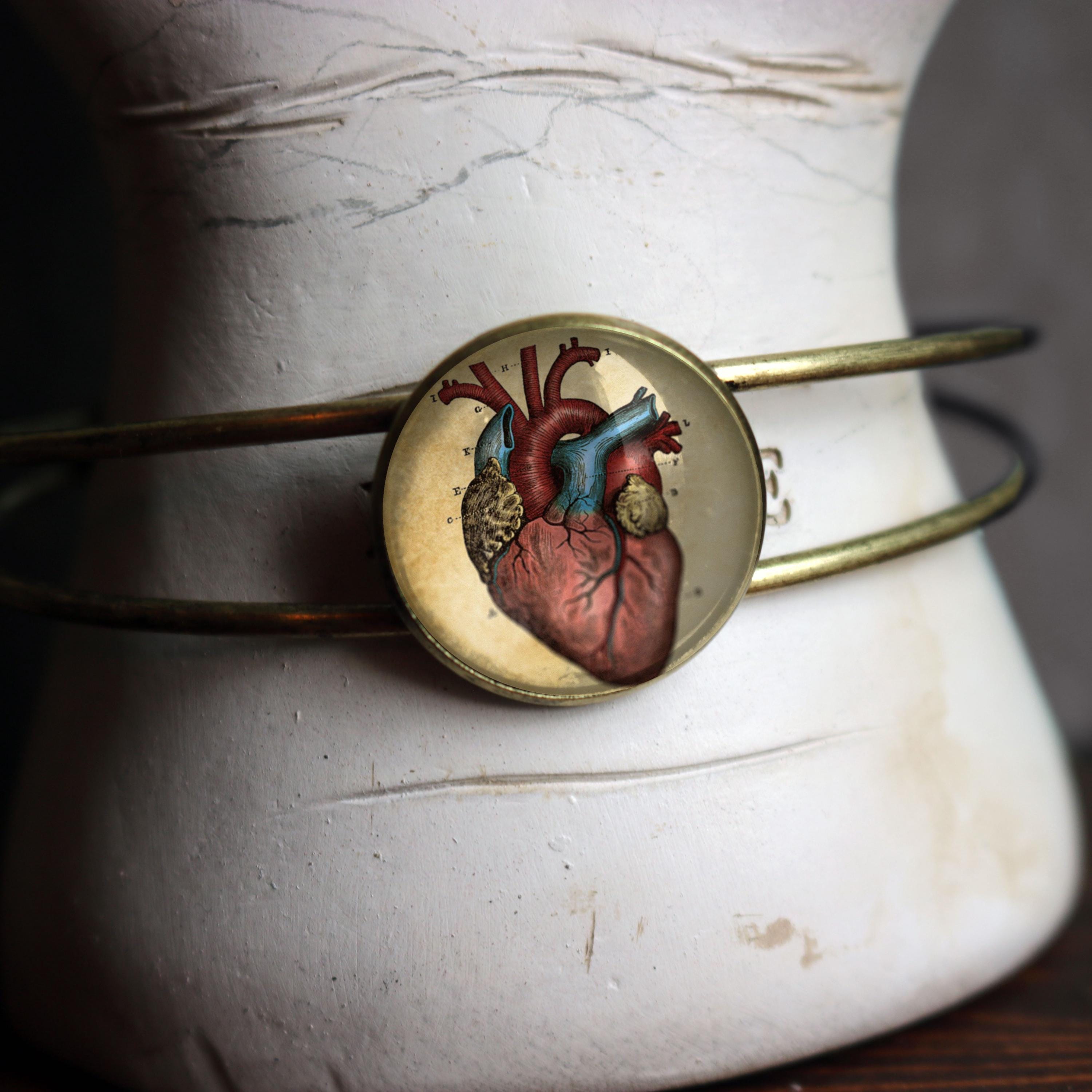 Anatomical Heart Goth Valentine Wire Cuff Bracelet