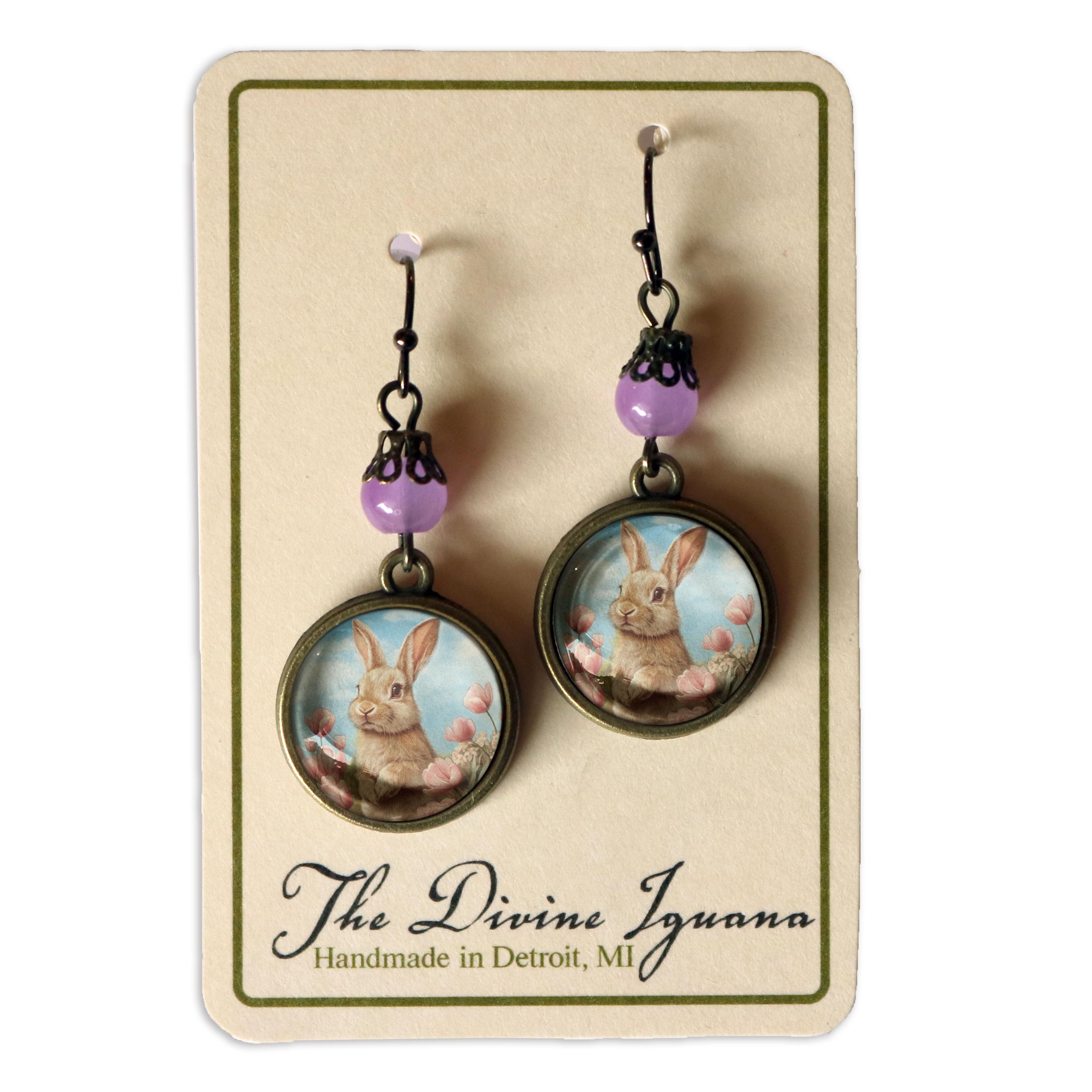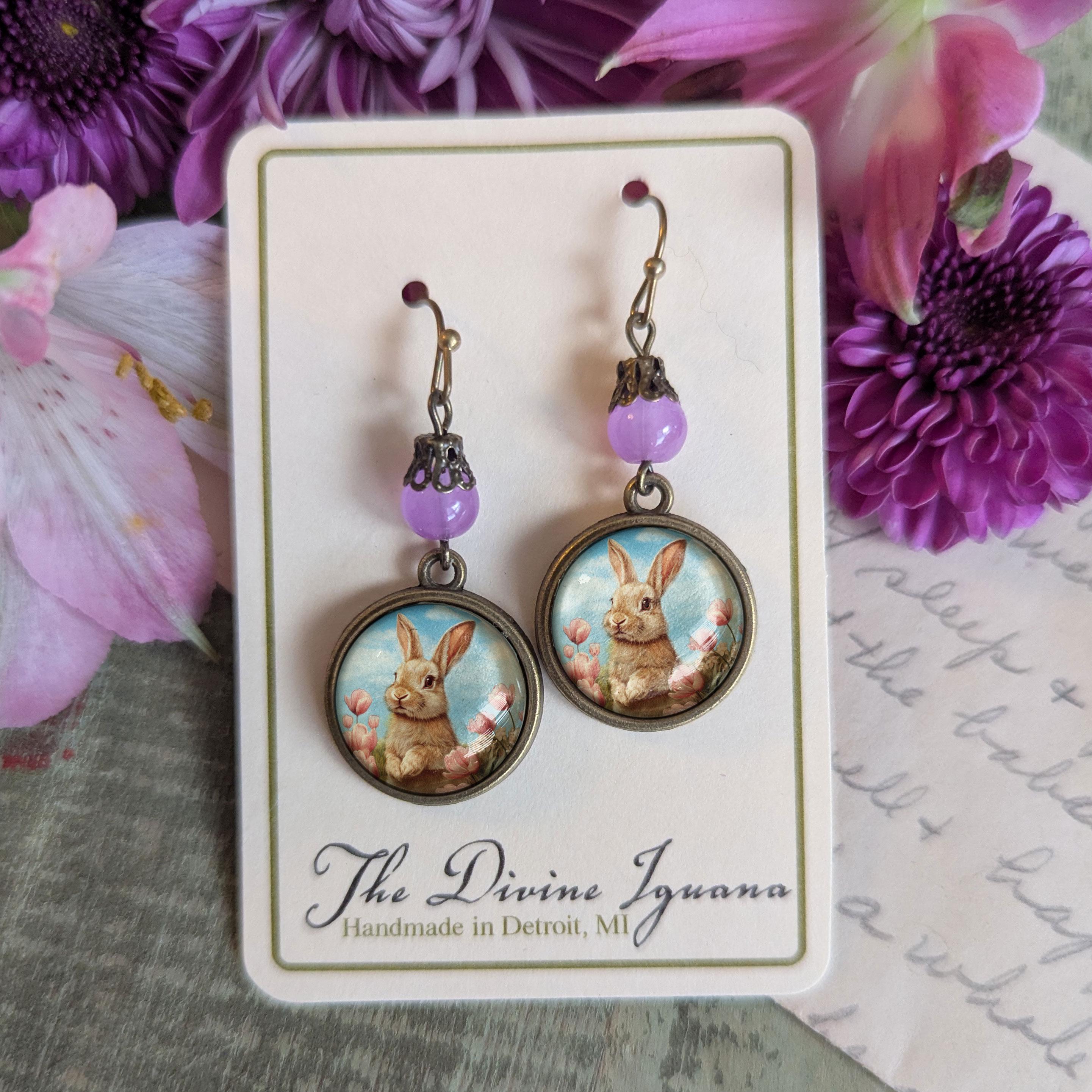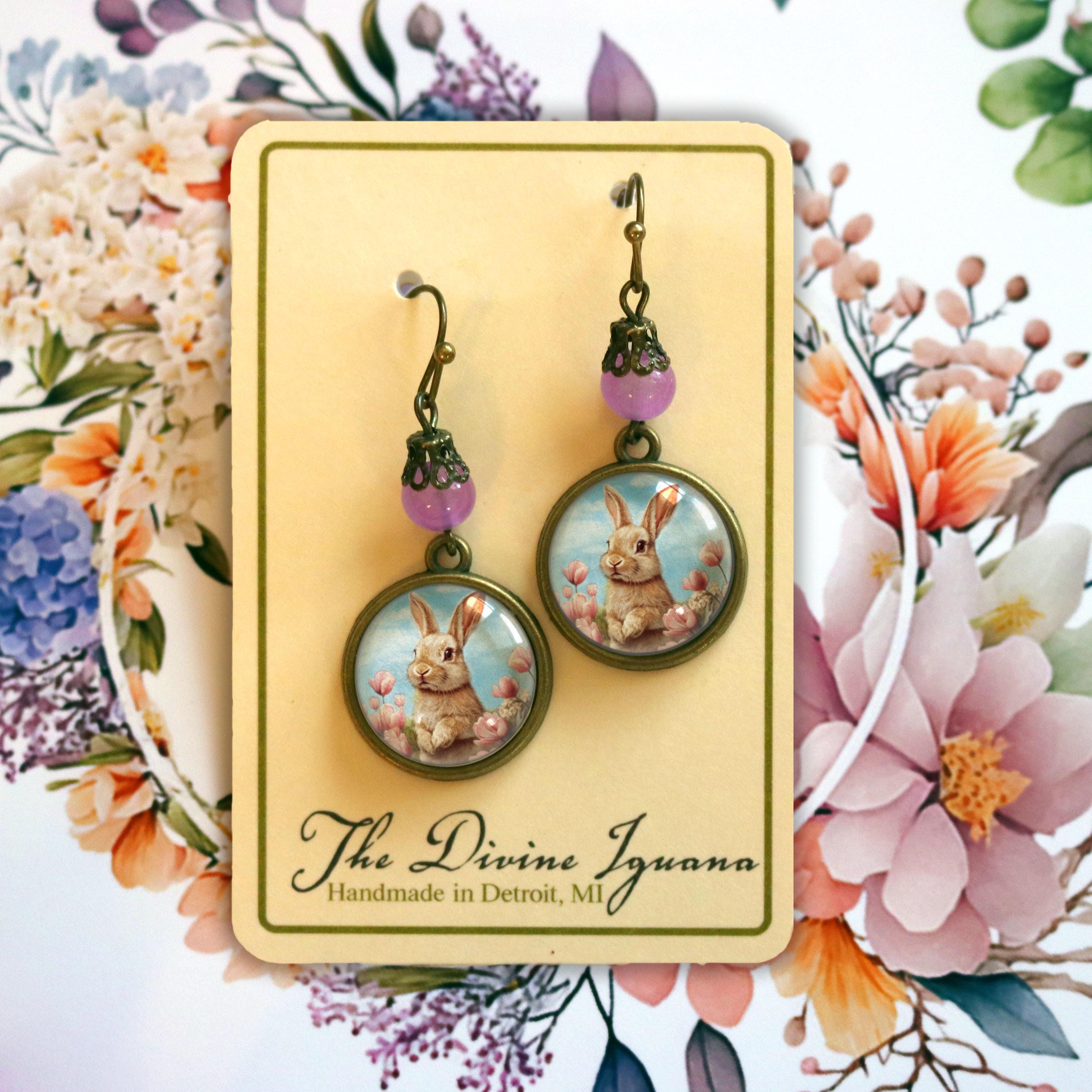 Vintage inspired glass cabochon earrings with dangling accent beads.