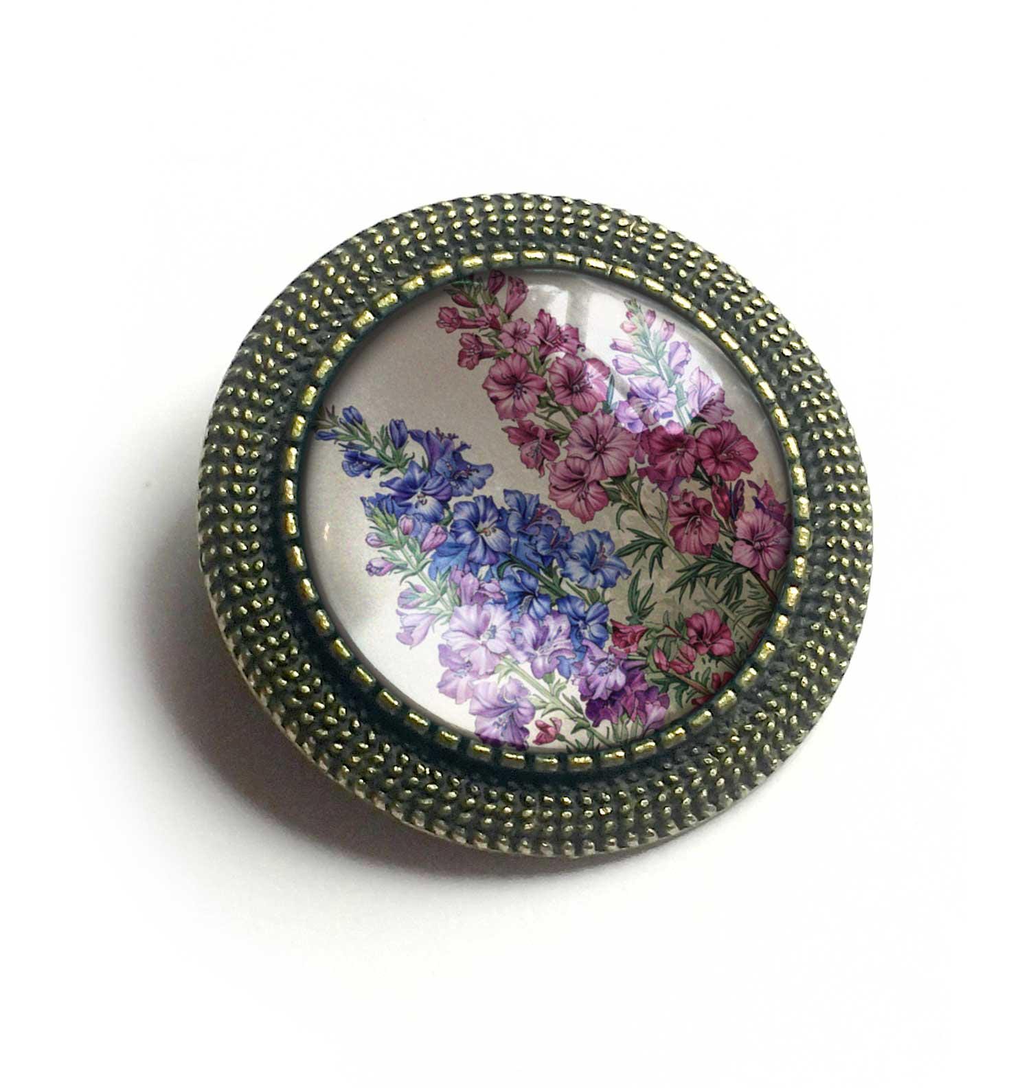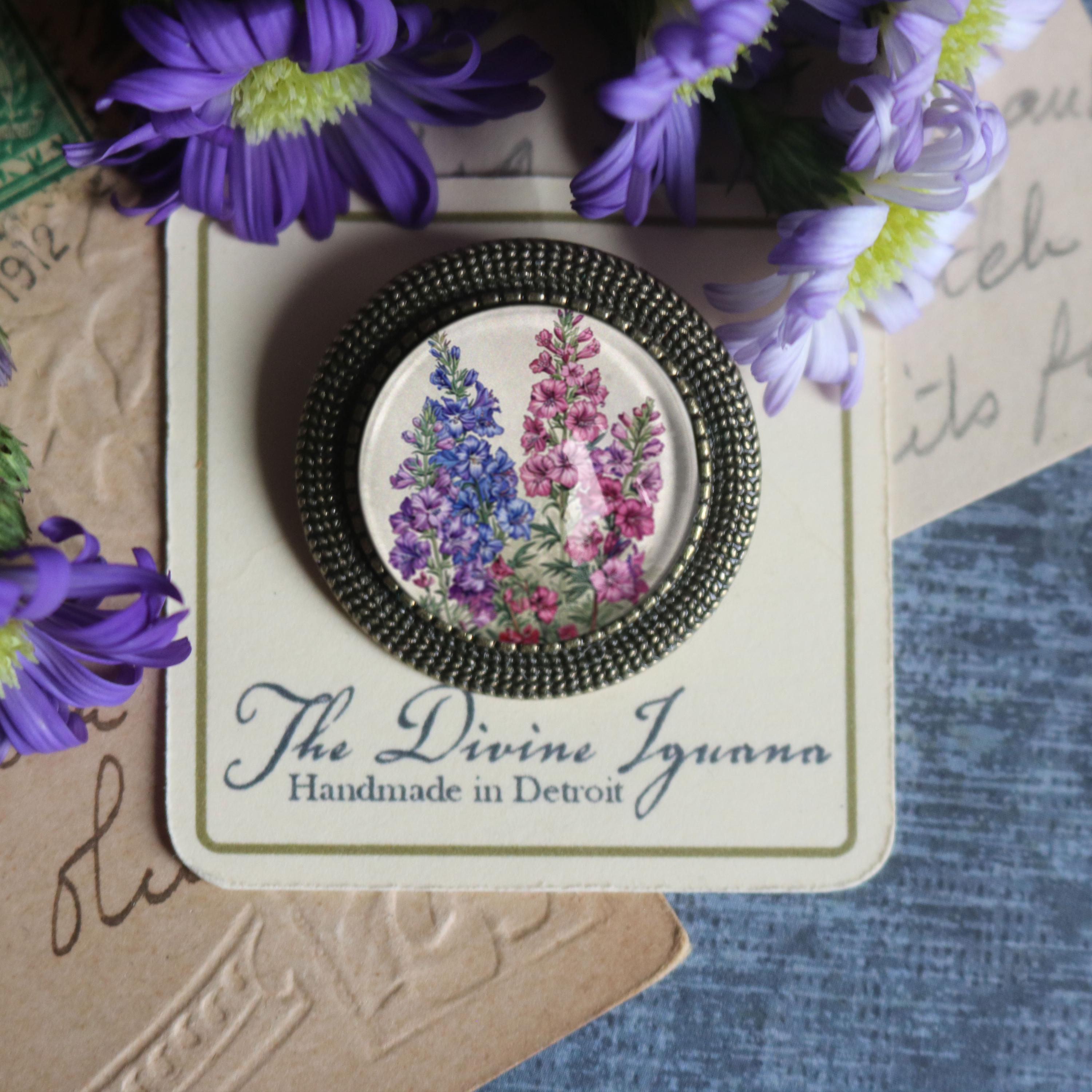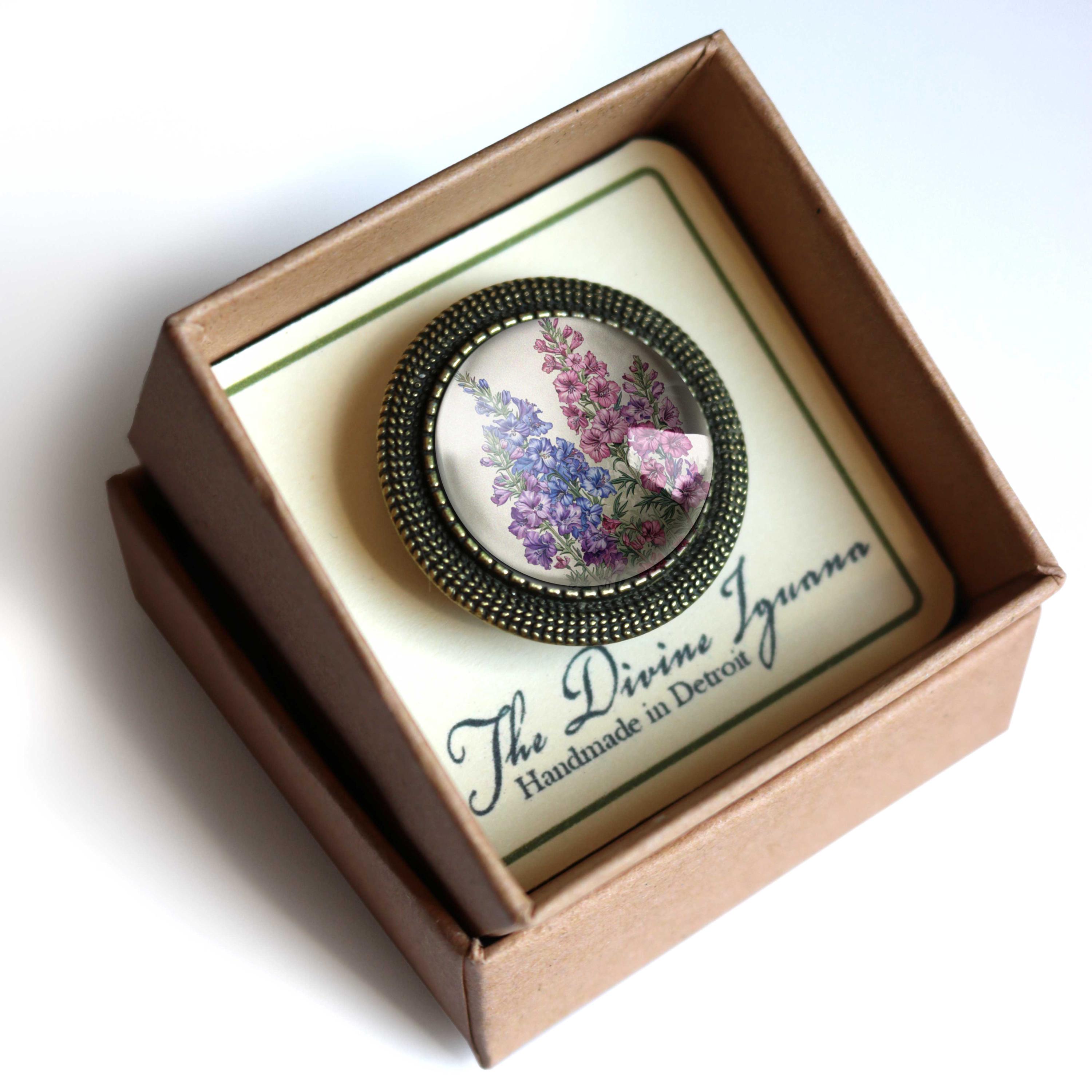 Brooches ship in a 2" x 2" chipboard box