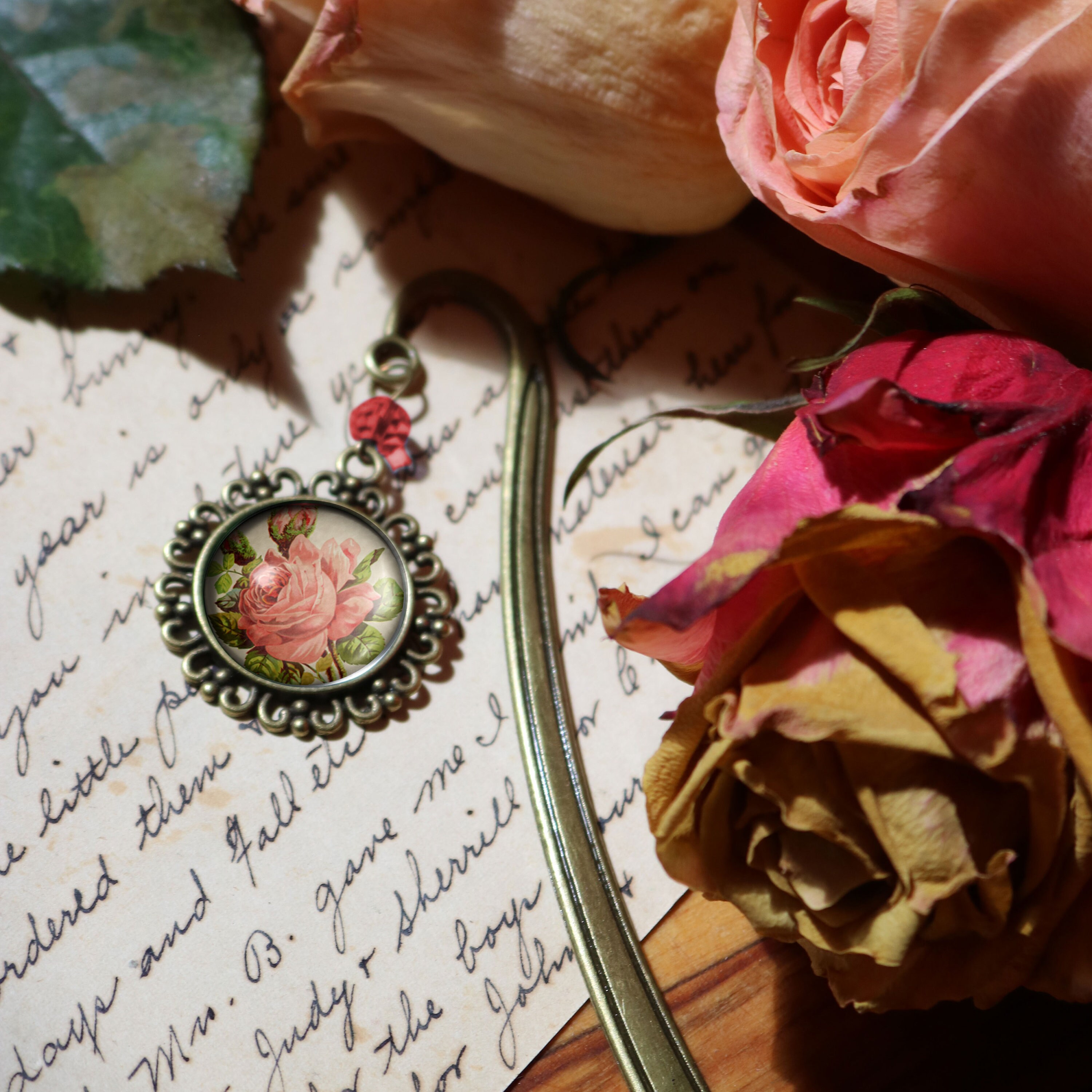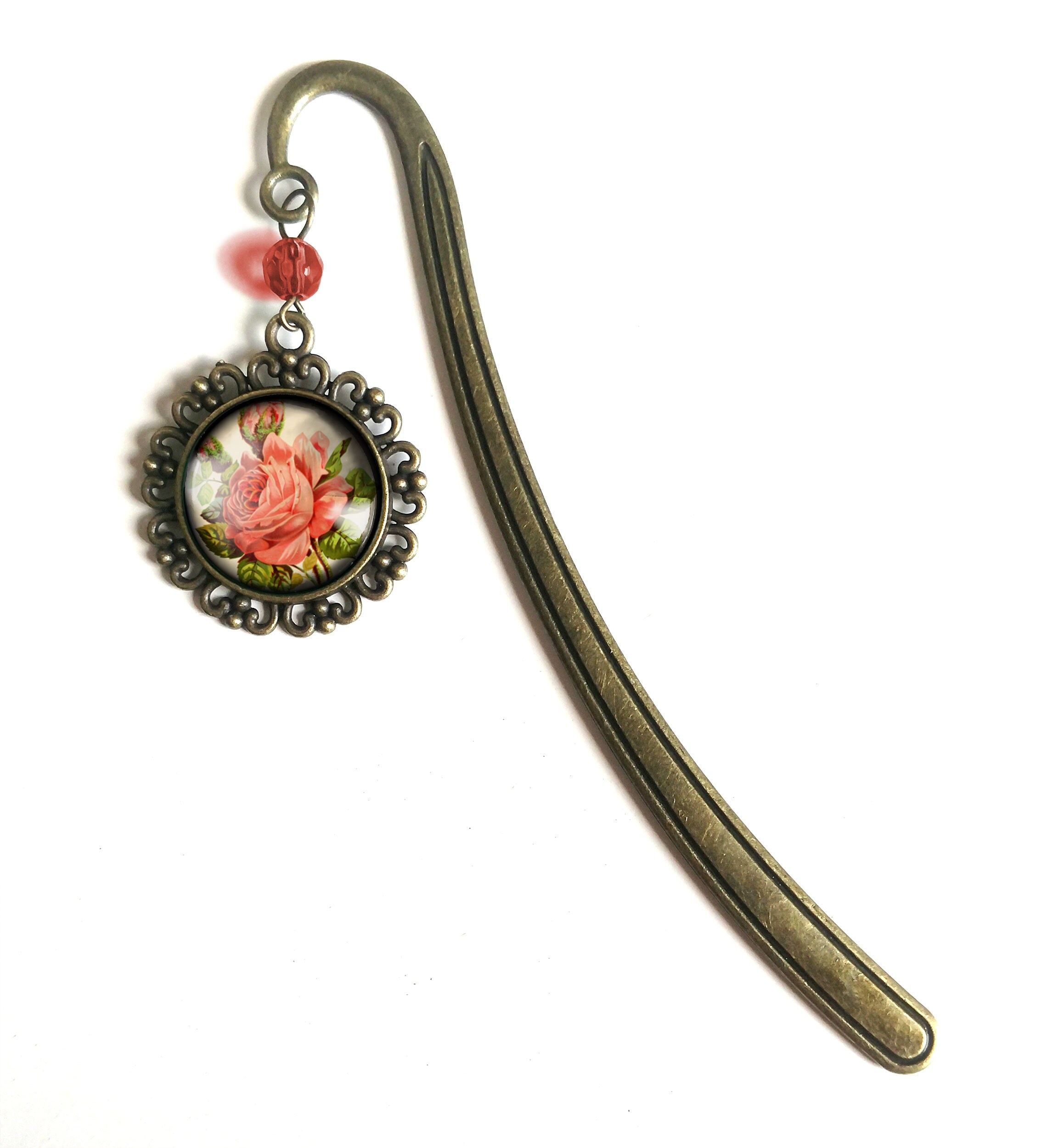 Keep your place with this elegant brass book hook style bookmark. The slender brass hook slides down between the pages while the ornate brass ornament dangles along the spine.