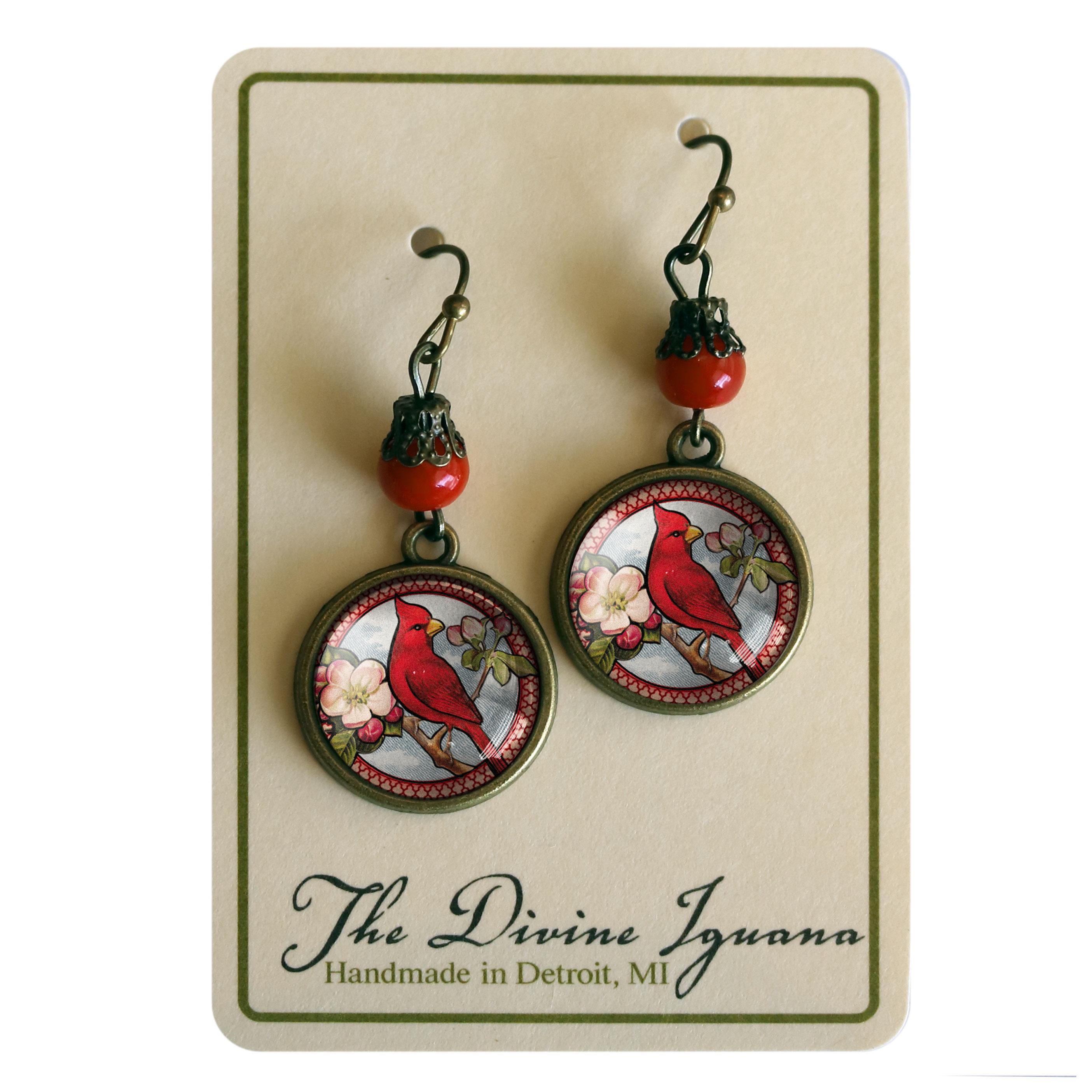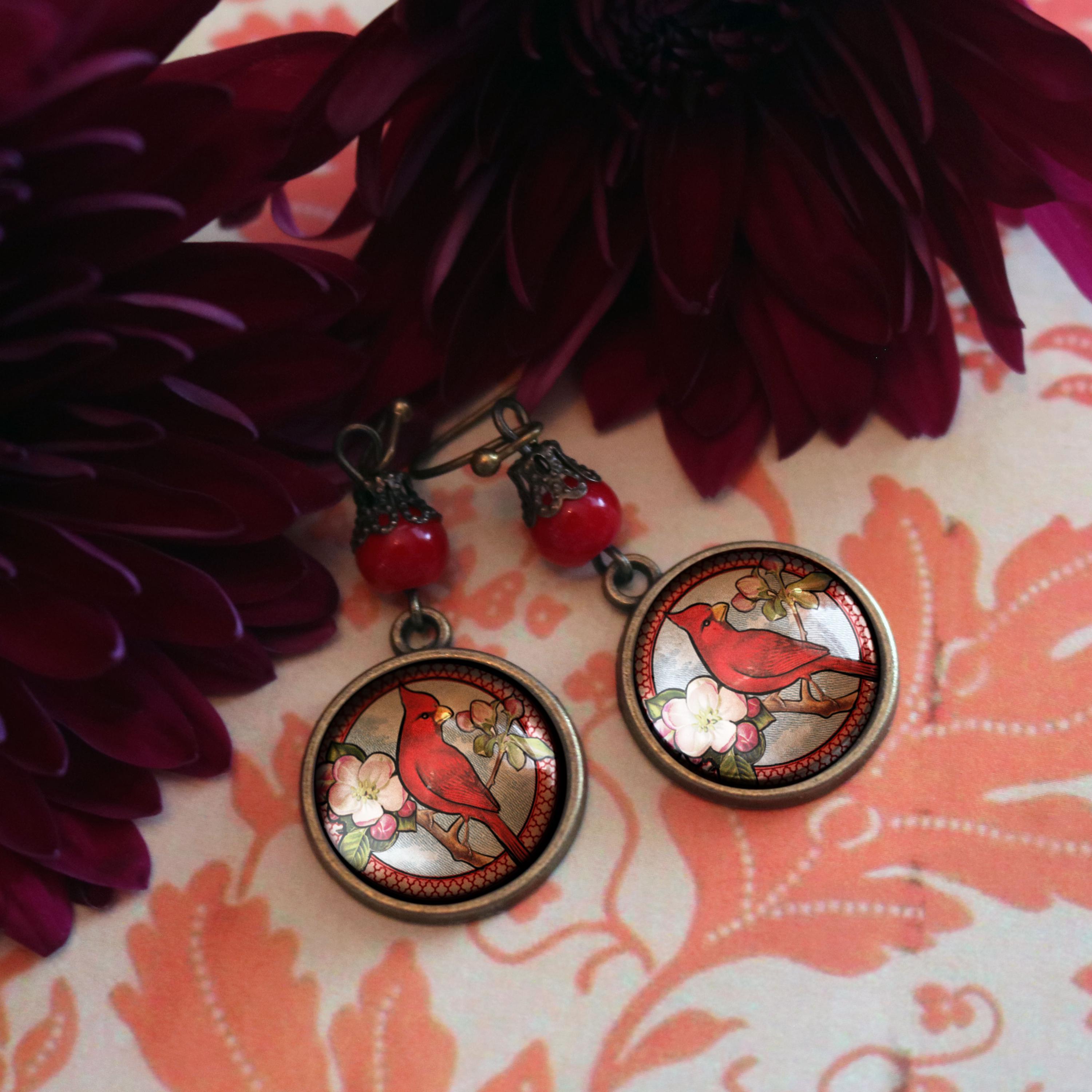 Vintage inspired glass cabochon earrings with accent beads and filigree bead caps.