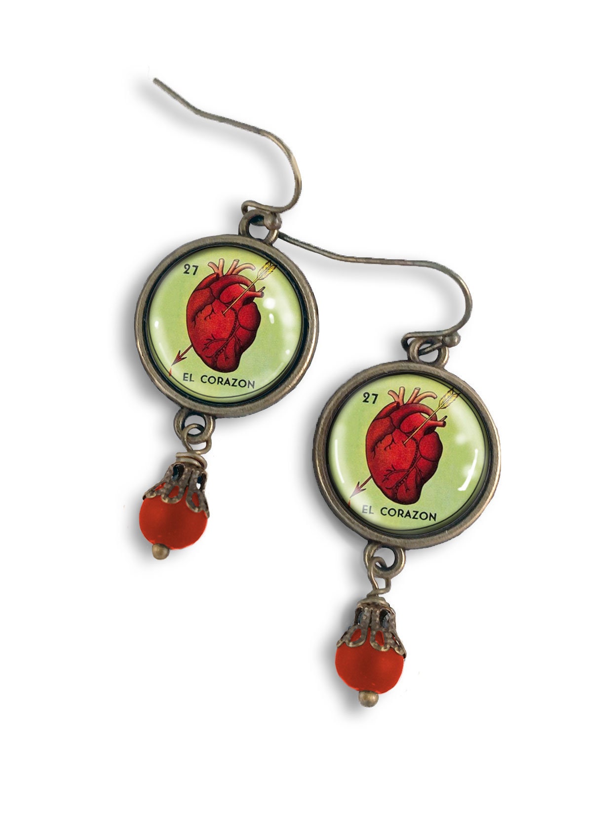 The quality of these El Corazon Loteria earrings is better than expected. They are beautifully crafted. The color and clarity of the image is bright is excellent. This size of earrings is suitable for everyday or a fiesta. 🎴🃏