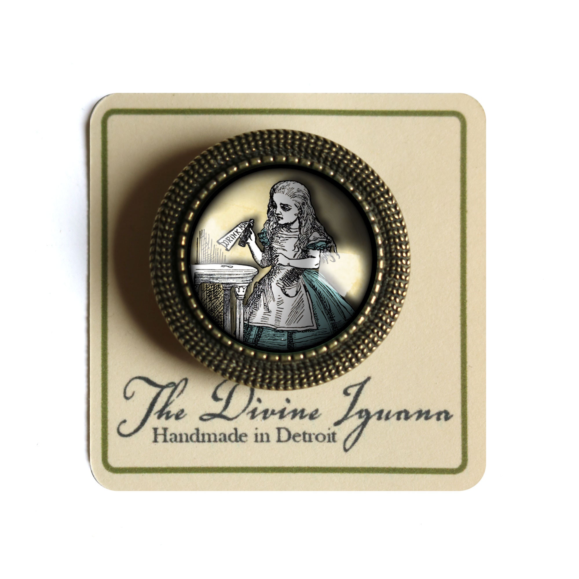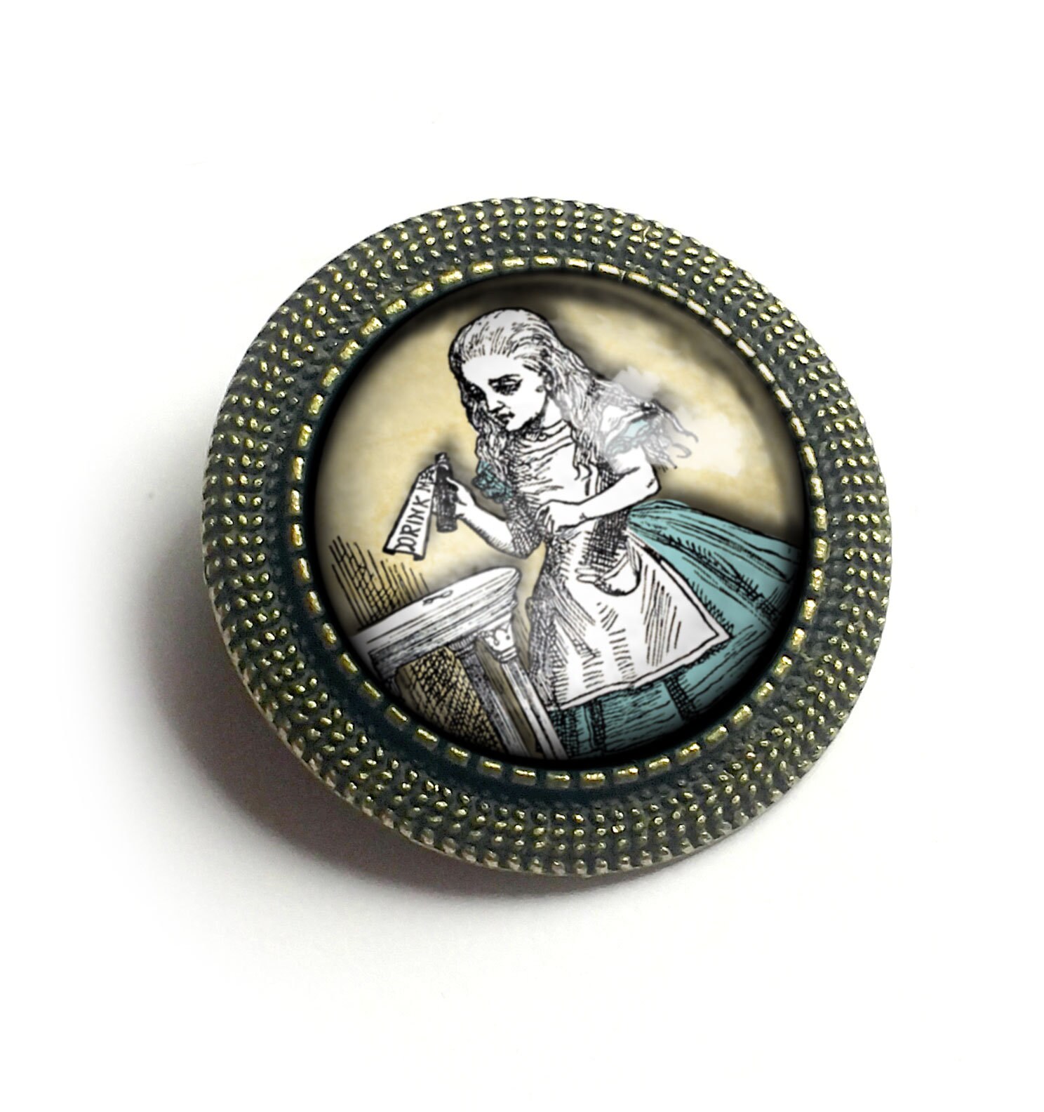 Nice Alice pin with classic Tenniel illustration.